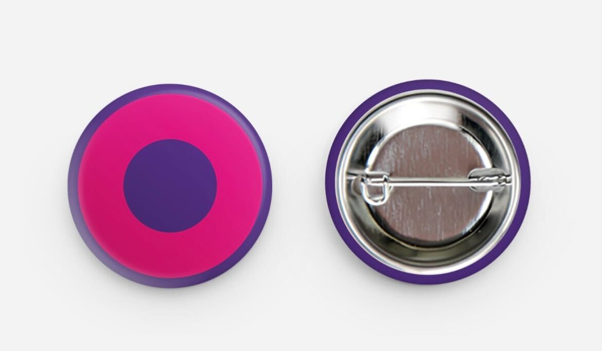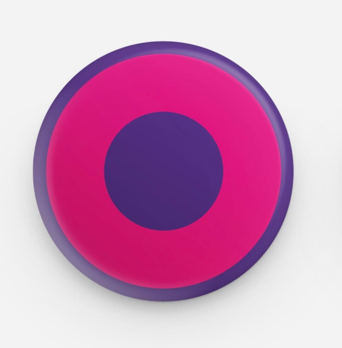 1.25" round adjustable steal-back pin. Phish donut in colors pink and purple, instead of the traditional red and blue.